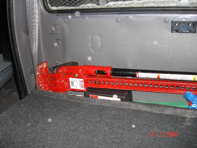 | Сегодня провел ревизию шмурдяка. Хай-джек, штатный домкрат, аптечка, огнетушитель, знак аварийной остановки поместились за заднее сиденье (еще место осталось). Полицейский фонарь "Маг Лайт" поместился в карман водительской двери. Под капот вместо второго аккумулятора положу сумку с ключами (когда будут).